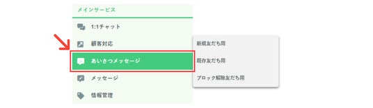 今回のアップデートで、従来「友だち追加時設定」と呼ばれていた機能は、「あいさつメッセージ」へ名称変更されました。これにより、機能の役割がより直感的に理解しやすくなります。