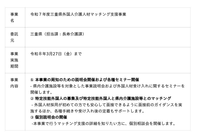 「令和7年度三重県外国人介護人材マッチング支援事業」受託決定