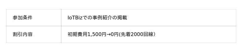 IoTBizへの事例紹介で初期費用無料キャンペーン実施中!