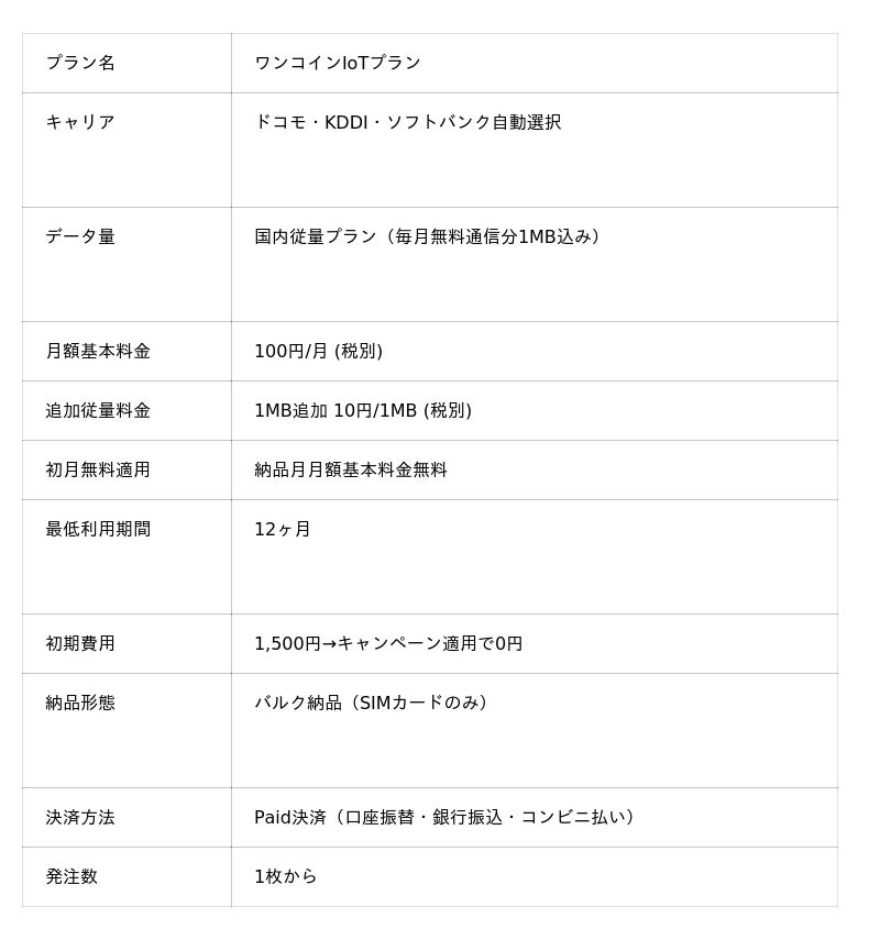 ワンコインIoTSIM初期費用無料キャンペーン詳細