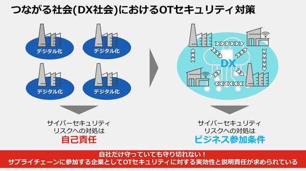 OTセキュリティ人材は、同社のようなセキュリティ製品を提供するベンダー側だけでなく、ユーザー企業側の、しかも幅広い層の企業に必要だと藤原氏は述べた。たとえば製造業で言えば、トップの大手企業だけでなく、そのサプライチェーンにつながる中小規模の企業まで含めて、セキュリティレベルを向上させていく必要があるからだ。