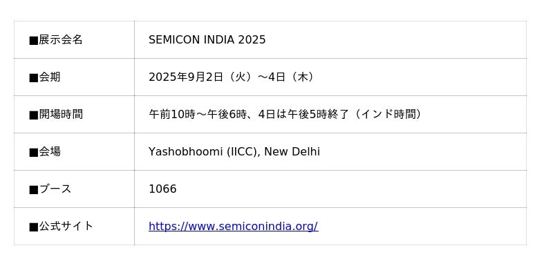 NXグループは、9月2日(火)~4日(木)の3日間、インド・ニューデリーで開催される「SEMICON India 2025」に出展いたします。