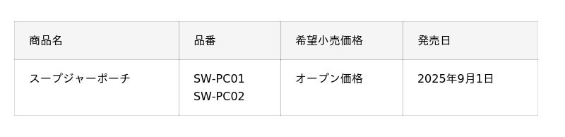 スープジャーの本体カラーと合わせたデザインで、一緒に使うことでより保温性能を高めるスープジャーポーチ(SW-PC型)を同年9月1日より発売します。