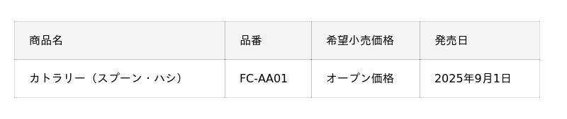 スープジャーやスープジャーポーチと調和するデザインで、シンプルながらも使い心地にこだわった形状のカトラリー(スプーン・ハシ)(FC-AA01)を同年9月1日より発売します。