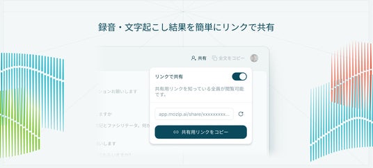 録音・文字起こしの結果をワンタップで共有リンク生成してクイック共有。