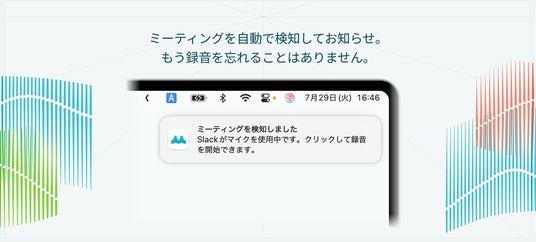 あなたが会議を始める際、MozipがPCマイクの入力を自動で検知して、録音開始のリマインドをお届けします。