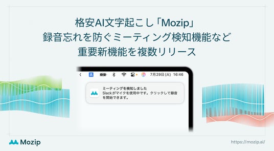 格安AI文字起こしの「Mozip」、録音忘れを防ぐミーティングを検知機能など重要新機能を複数リリース
