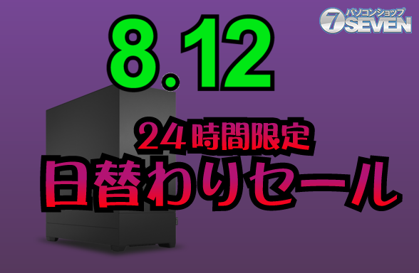 セブンアールジャパンは、8月12日限定で「2025/8/12 24時間限定セール」を開催する。このセールでは、最新のゲーミングPCやデスクトップPCが最大100,000円オフとなる。
