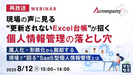 マジセミ株式会社は「【再放送】現場の声に見る、“更新されないExcel台帳”が招く個人情報管理の落とし穴」というテーマのウェビナーを開催します。
