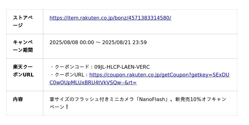 期間限定!掌サイズのフラッシュ付きミニカメラ「NanoFlash」、新発売10%オフキャンペーン!