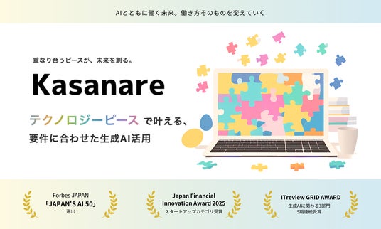 要件に合わせたカスタマイズを可能にする独自技術「テクノロジーピース」と、導入したAIエージェントのマネジメント基盤「Kasanare Agent Gateway」によって、大手金融機関をはじめとするエンタープライズ企業への導入が進んでいます。