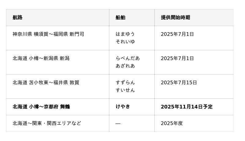 (注)「けやき」の詳細は、新日本海フェリーのウェブサイトをご参照ください。