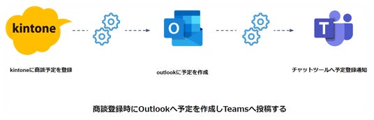 連携例として、『商談登録時にOutlookの予定を作成しTeamsへ投稿する』ケースをご紹介します。