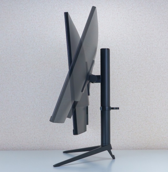 調整機構はチルト(マイナス5度~20度)、スイーベル(左右30度)、ピボット(右90度)、高さ調整(130mm)に対応しており、ユーザーは好みに合わせて最適なポジションに設定できる。縦画面表示も可能なので、Web閲覧や縦スクロールのシューティングゲームなどで威力を発揮する。