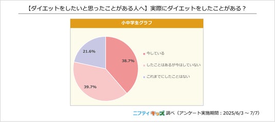 4割近くの小中学生が「今している」と回答しました。「したことはあるが今はしていない」の回答と合わせると、ダイエットを経験したことがある人は78.4%いるようです。