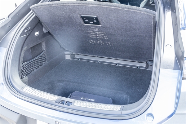 電動テールゲートを開けて、荷室から見てみよう。容積はBセグメントSUVとは違うところをみせつける500リットルと大容量。しかも床は二重床になっており、充電ケーブルなどを入れておくのに便利だ。側面にはサブウーファーを搭載。銘柄はデンマークの老舗ブランド「DYNAUDIO」。