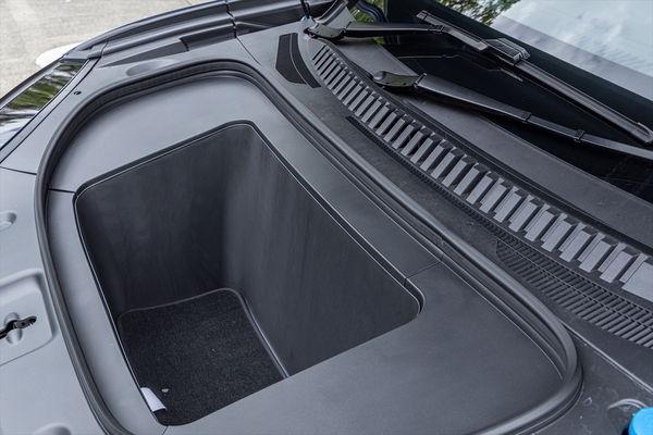 フロントボンネットを開けると、まるでポルシェ911のような収納スペースが姿を現わした。