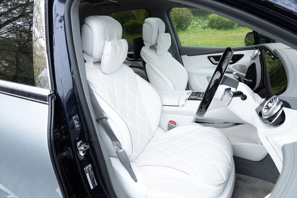 バッテリーEVなので、車内はとても静か。ですが、その静かさが段違い。まさに浮世離れの静かさで、車内の会話がとても弾みます。乗り心地はやや硬めで、細かな段差などは拾いやすいかも。もっともこれはメルセデス全体にいえる傾向なので、マイバッハだから云々というわけではありません。