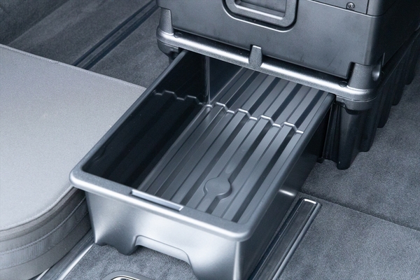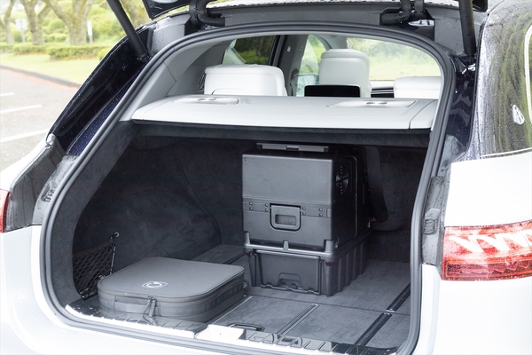ラゲッジを見て驚きました。まず、バックドアがとんでもなく分厚いではありませんか。これなら追突事故を受けても、大切な荷物には傷ひとつなさそうです。続いて、見た目に反して容積が少ないことに驚き。狭くなっている理由はひとつ、ボトルクーラーがあるから。それを見て寺坂さんは「ボトルクーラー、いるんですか?」と思ったとか思わなかったとか。