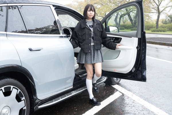 「やっぱり大きいですね。それにすごく力があります」とのこと。「やはり電気自動車はいいなぁ」と感心しきり。「この静かさと快適さで、東京から大阪まで行けちゃうのはすごい!」と、ウルトララグジュアリーの世界に心酔された様子。