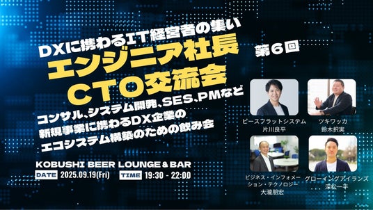 涼しさが戻る9月の金曜夜、KOBUSHI BEER LOUNGE & BAR(渋谷・道玄坂)にて、ITエンジニア出身の経営者やCTOを対象とした交流会を9月19日(金)19:30より開催いたします。秋は新しい出会いと再スタートの季節。生成AIやDXの波が加速する中で、「技術と経営の両方を理解する人材」のつながりは、今ますます注目されています。今回の会では、エンジニア同士だからこそ語れるマニアックな開発トークや、PM不足・サーバー構成の悩み、ツールやプラグインの小ネタなど、普段のビジネス交流会では話せないテーマが満載。幹事はWebサービス開発に実績のあるエンジニア経営者を中心に、リファラル中心の構成で、初対面でも自然に会話が弾みます。エンジニアリングの視点からビジネスを考えたい、そんなあなたのための夜です。最新の技術トレンドを語り合い、リアルで信頼できる人脈を築く秋の夜。「ビジネスの次の一手は、信頼できるエンジニアとの出会いから。」そんな価値ある時間を、渋谷でお届けします。