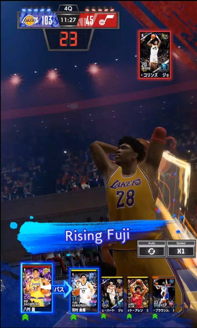 今回のログインボーナスで手に入る八村選手は、ゲーム内の試合をプレイ中に発動できるスキル「Rising Fuji」を所持しています。