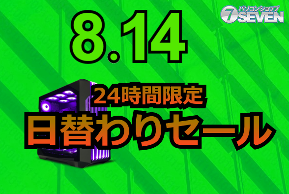 この24時間限定セールは、8月14日0:00から23:59までとなっており、特設ページで全てのセール対象商品をチェックできる。詳細はPCショップSEVENのサイトにて確認可能だ。