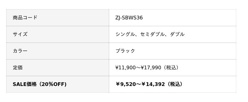 ※対象期間中にZINUS公式サイト(https://zinus.jp/)で対象商品をご注文いただくと、最大20%OFFでご購入いただけます。