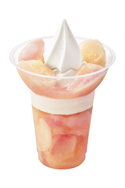 白桃は収穫後に追熟し、冷凍したものを使用しており、北海道ミルクソフトとの相性も抜群とのことです。
