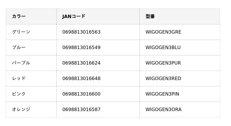 左から、グリーン、ブルー、パープル、レッド、ピンク、オレンジ