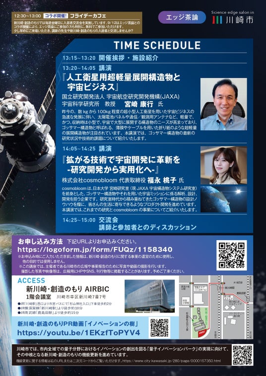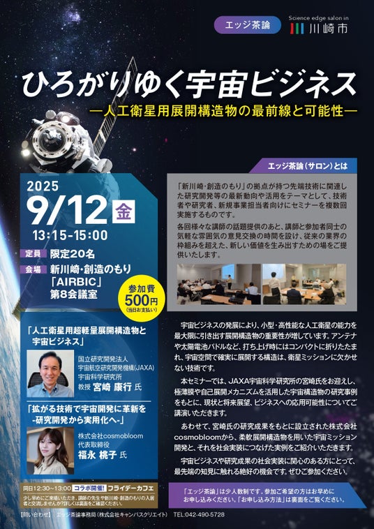 【9/12 開催】川崎市主催 令和7年度 第1回エッジ茶論のご案内:ひろがりゆく宇宙ビジネス~人工衛星用展開構造物の最前線と可能性~