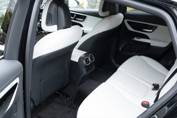 運転席もチェックしましょう。大型のセンターディスプレイが印象的。「ナビも見やすくていいですね」と太鼓判です。そしてセンターコンソールを見て「シフトレバーがないのですが」とも。メルセデスはハンドルコラム側にセレクターが設けられています。「そのためか、車内がとてもスッキリした印象を受けますね」とのこと。好印象です。