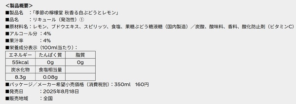 コカ・コーラシステムは、レモンサワーブランド「檸檬堂」から、「季節の檸檬堂 秋香る白ぶどうとレモン」を8月18日より発売します。