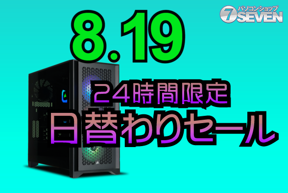 パソコンショップSEVENを運営するセブンアールジャパンは、一日限定の「2025/8/19 24時間限定セール」を開催する。このセールでは、最新のゲーミングPCやデスクトップPCが最大100,000円オフで提供される絶好の機会となる。