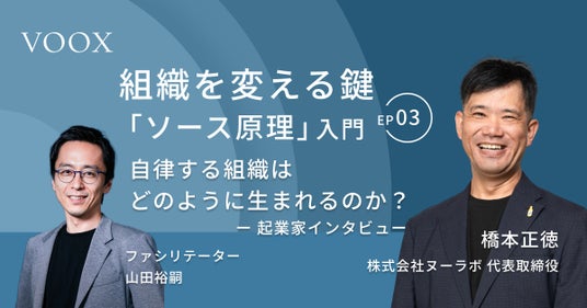 組織を変える鍵「ソース原理」入門『Ep.3 自律する組織はどのように生まれるのか?~起業家インタビュー』音声教養メディアVOOXにて、配信開始!