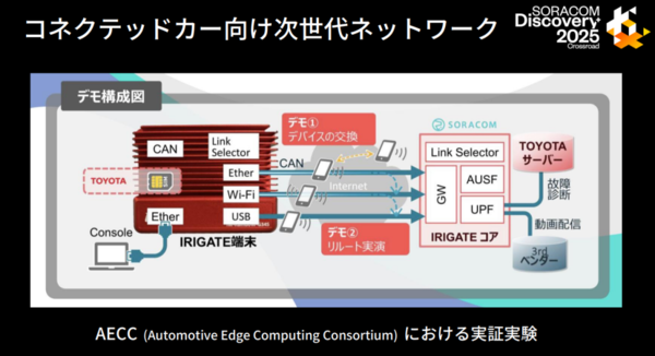 この機能の背景にはIoT向けeSIM標準(SGP.32)の進展があり、プッシュ型のプロファイル切替など現場が求めてきた振る舞いを前提にできるようになりました。国や契約による使い分け、大容量や音声の要件、デュアルSIM対応といった実務要件に応え、2025年度中の対応プロダクト提供を目指すと述べました。あわせて、AECC/トヨタの次世代コネクテッドカー実証でも、柔軟なプロファイル管理の価値が期待されていることを共有しました。