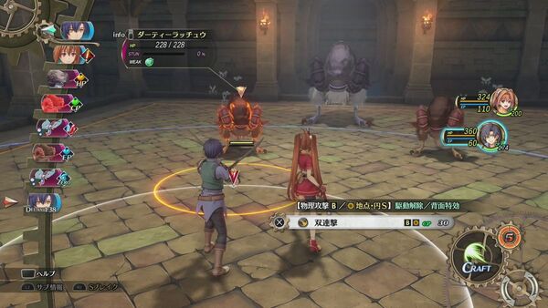 戦闘システムは直近のシリーズ作の『界の軌跡』と同じく、アクションのクイックバトルとコマンドバトルの切り替え方式を採用。まずアクションで敵をたたき、体勢を崩してからコマンドバトルに移ると有利な状況で戦える。