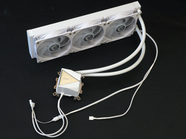 もっとも、「MAG CORELIQUID I360」は天板部に搭載するコンセプトの製品で、その場合は「装着済み」であるため手間を省ける。しかし、もしもラジエータを前面、底面、ピラーレスモデルのように側面に置きたい場合、ファンの向きを入れ換えるために取り外し→再固定が必要になる。まあ、大半の自作PCユーザーはラジエータを天板部に装着することを選択するだろうから大した問題ではないだろう。