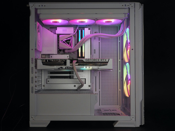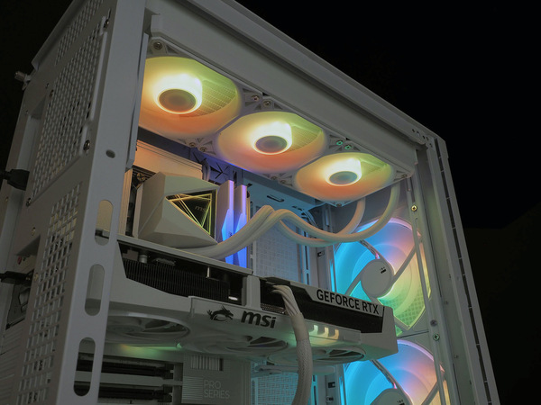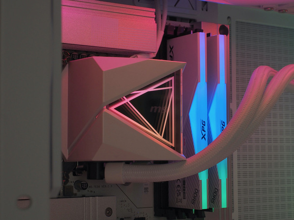 「MAG CORELIQUID I360」自体は、一部背面コネクタ「Project Zero」紹介記事でも組み込んだ写真を掲載しているが、せっかくなのでこの記事ではLEDの光り方についても複数カットでご覧いただければと思う。