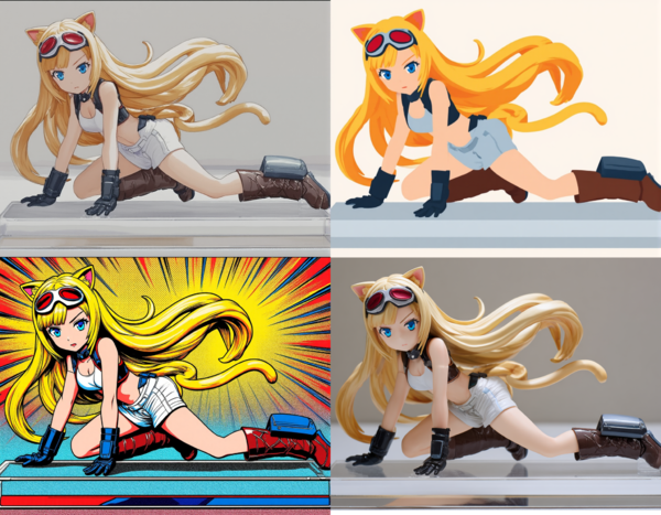 LoRAはもともと、特徴のある画風だけをまとめたデータを集中的に学習することで、基盤モデルの出力結果を一定方向に引きずることを可能にする技術です。もちろん、基盤モデルが優秀であればあるほど、LoRAに対しても敏感に反応します。たかだか数十枚の画像データであっても、かなり精度の高いLoRAを制作できることは、Flux Kontextの性能の高さを物語っているわけです。