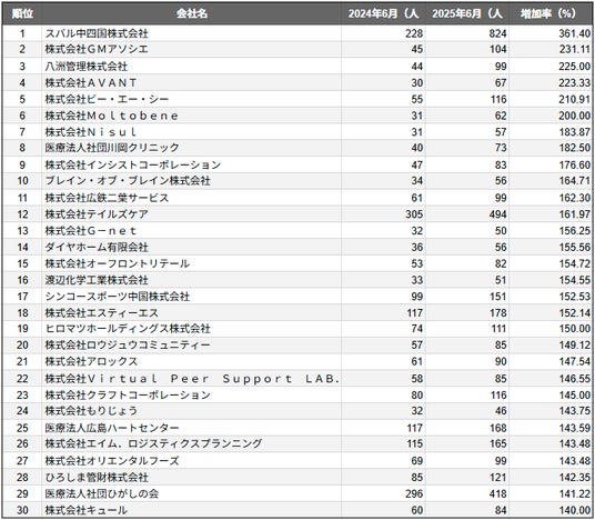【2025年最新版】広島市:従業員数増加率ランキングTOP30/SalesNow DBレポート