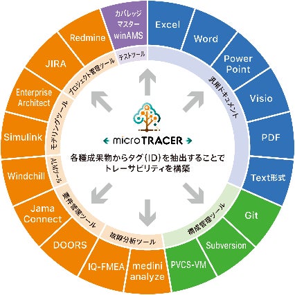 「microTRACER Ver.7」はソフトウェア開発におけるトレーサビリティ管理の支援ツールです。様々な開発ツールとの連携を行い、開発プロセス全体のトレーサビリティの可視化・一元管理を行うことが可能です。