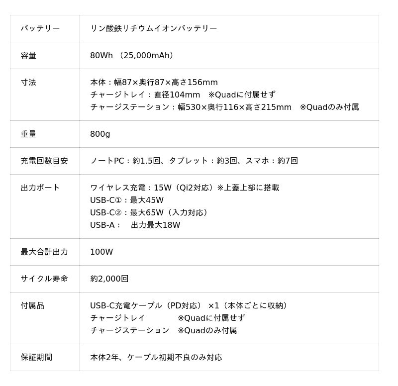 - 4台同時充電可能なハンドル付きチャージステーションを付属