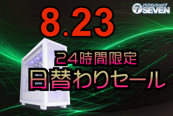 セブンアールジャパンは、8月23日に「2025/8/23 24時間限定セール」を開催する。このセールは最新のゲーミングPCやデスクトップPCが最大49,000円オフで購入できるチャンスだ。セール期間は8月23日0:00から23:59までで、パソコン愛好者には見逃せない一日となる。