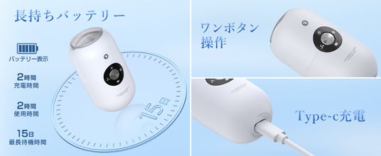 IPX6防水設計で、使用後のお手入れも簡単。USB-C急速充電に対応し、750mAhバッテリー搭載でフル充電後は最大180分の連続使用が可能です。
