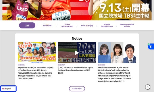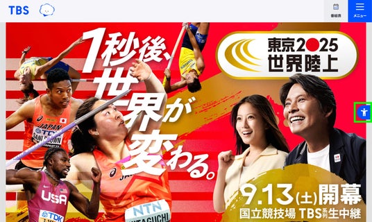 株式会社Kiva(本社:東京都中央区、代表取締役:磯崎 裕太、以下 Kiva)は、2025年9月13日(土)より開幕の『東京2025世界陸上』におけるTBS番組公式ページに、ウェブアクセシビリティツール「ユニウェブ」が導入されたことをお知らせいたします。