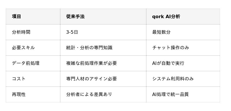 「qork」にAIチャットによるクラスタリング分析機能が追加。 - 専門知識や時間を要する顧客分析を、定量調査レベルの精度で「顧客セグメント」を瞬時に自動発見