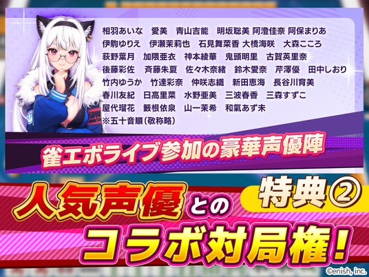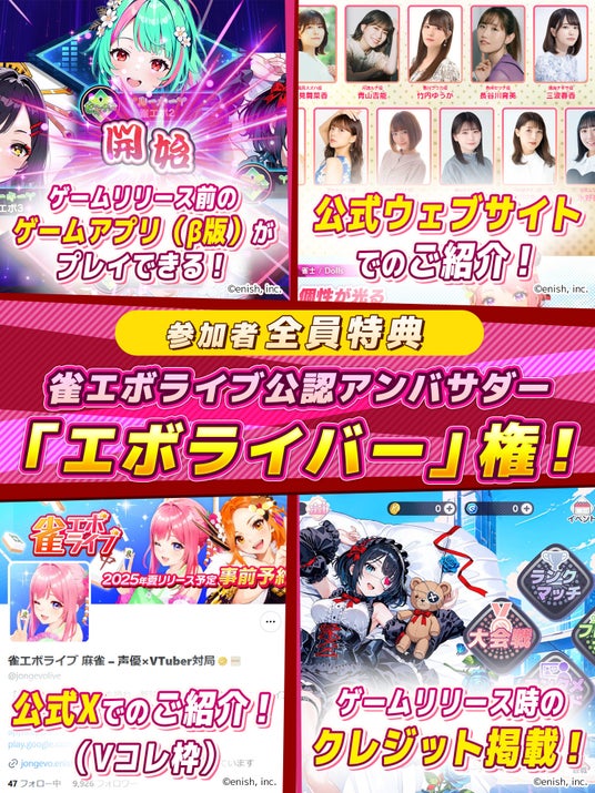 公式チャンネル100万人オーバーの超人気VTuberグループメンバーとのコラボ広告&人気声優とのコラボ対局権が獲得できる!『雀エボライブ』公認アンバサダー募集イベントのエントリー開始!