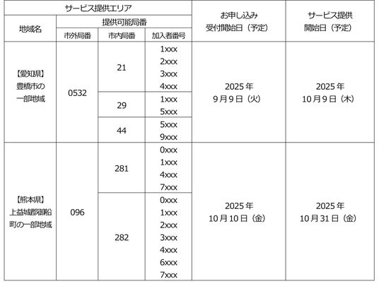 ~新たに愛知県、熊本県の一部地域で、それぞれ2025年10月9日、10月31日からサービス提供開始~