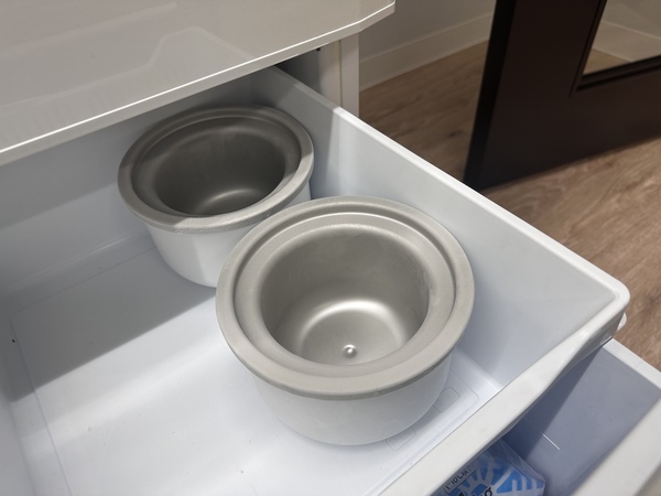 唯一の注意点は、保冷ボウルを事前にしっかり凍らせておく必要があることです。使用前に16〜24時間、冷凍庫に入れておかないと使えません。そのため、「すぐにアイスを作りたい」と思っても、事前準備を忘れていると作れない場合があります。